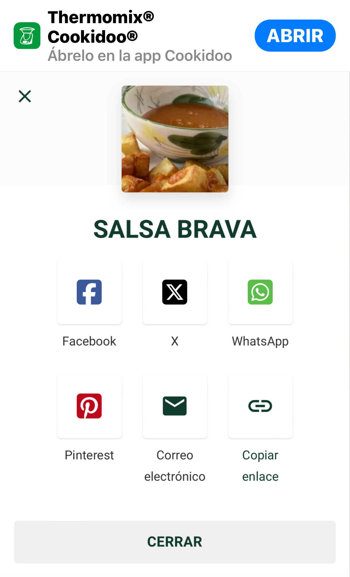 Pero con la última actualización de Cookidoo todo es mas sencillo, la he compartido con mis clientes y con mis comerciales desde la aplicación, y a través de las redes sociales que más utilizo Facebook, Instagram y por supuesto, WhatsApp. https://cookidoo.es/created-recipes/public/recipes/es-ES/01HRVN1TBNW78R3WBR7FM8PR6M